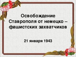 21 января 1943 года Ставрополь был освобождён от немецко-фашистских захватчиков. Немецкие войска захватили Ставрополь (в годы Великой Отечественной войны Ворошиловск) 3 августа 1942 года. Предварительно