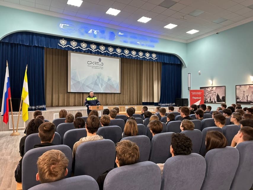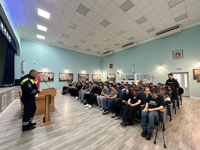 28 октября 2025 года сотрудник ОБ ДПС Госавтоинспекции УМВД России по г. Ставрополю, лейтенант полиции Невдахин Владимир Валерьевич, провёл профилактическую беседу с обучающимися колледжа. Он ознакомил ребят со статистикой ДТП с участием детей на территории Ставропольского края, обозначил основные причины дорожно-транспортных происшествий.