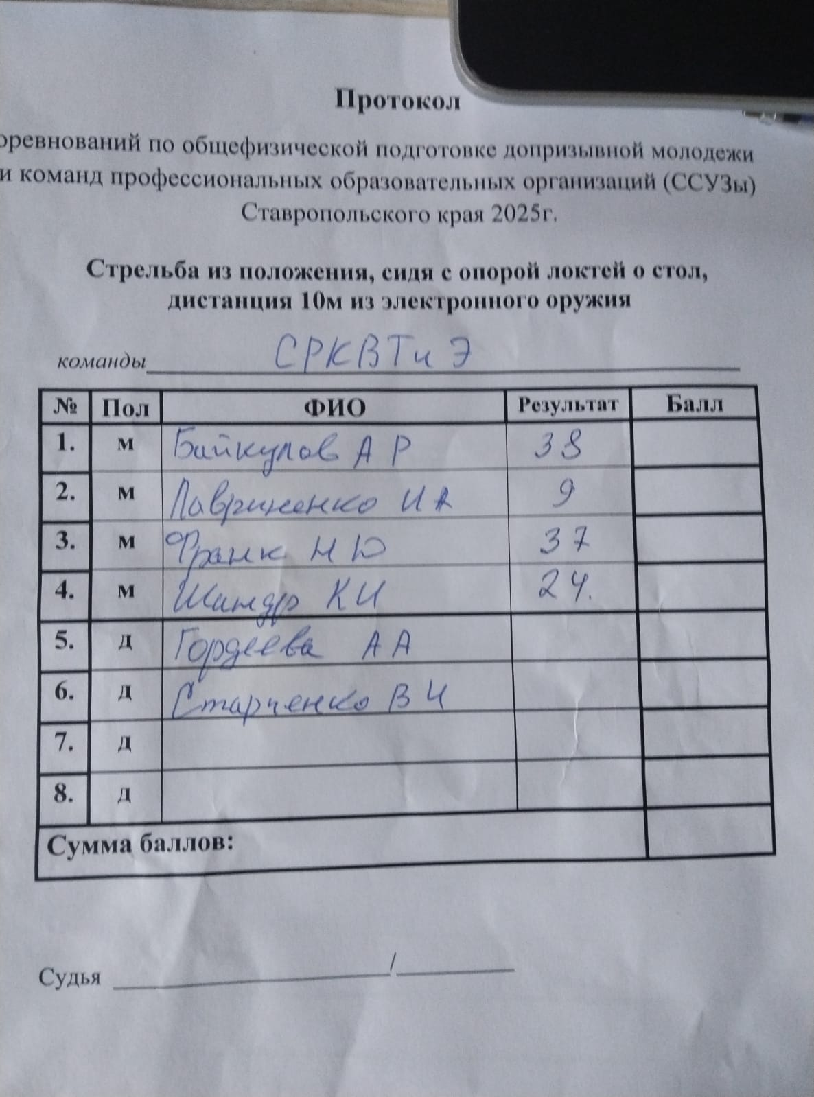 25 апреля 2025 года сборная команда нашего колледжа приняла участие в финале краевой спартакиады допризывной молодёжи среди студентов СПО. Всего в мероприятии приняли участие 24 команды из разных населенных пунктов Ставропольского края.