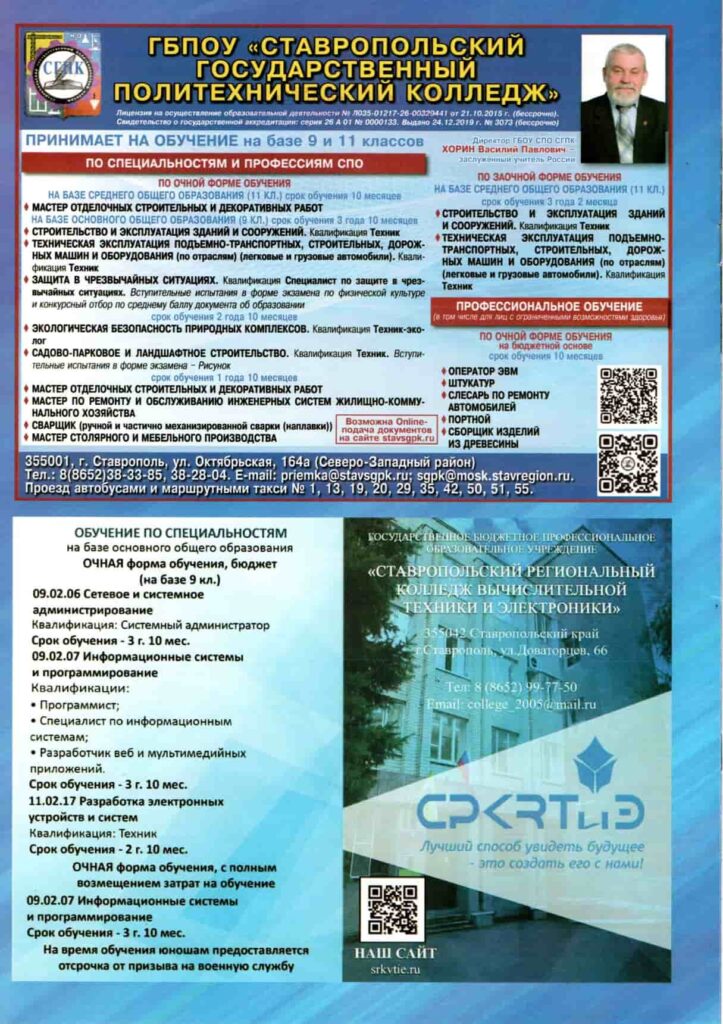 Наш колледж занял достойное место среди образовательных учреждений, представленных в популярном ежегоднике «Абитуриент — 2026». Сборник ежегодно публикует актуальную информацию обо всех учебных заведениях края, помогая будущим студентам выбрать подходящую специальность и программу обучения.