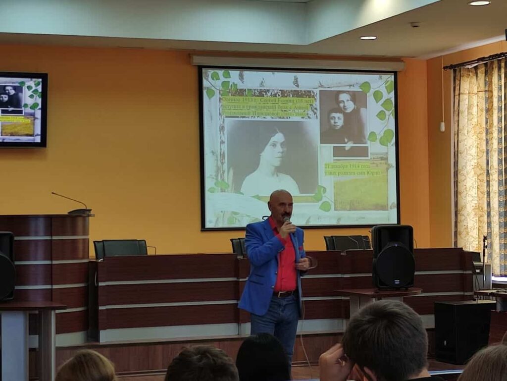 В 2025 году отмечается знаменательная дата для нашей страны в области литературы — 130 лет со дня рождения Сергея Александровича Есенина. 25 сентября обучающиеся группы 17/1 ПР приняли участие в мероприятии, посвящённом юбилею поэта. Концерт по Пушкинской карте «Пой песню, поэт!» состоялся в Ставропольской краевой универсальной научной библиотеке им. М. Ю. Лермонтова. Перед аудиторией выступил Владимир Павлович Бутенко — прозаик и поэт, автор романов, повестей, рассказов и многих песен, радиожурналист. Владимир Павлович является заместителем председателя правления краевой организации Союза писателей России.