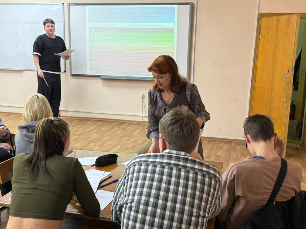 На занятии была реализована групповая форма работы, в ходе которой студенты определяли концентрацию углекислого газа в аудиториях и анализировали его влияние на состояние обучающихся, используя данные биологических и математических методов. Особое внимание уделялось междисциплинарному подходу: сочетанию экспериментальных измерений и статистической обработки результатов.
