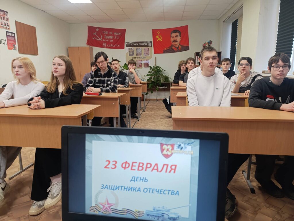 Сегодня в колледже для студентов 1‑го курса прошли занятия, посвящённые одному из самых значимых праздников в календаре нашей страны — Дню защитника Отечества. Это не просто дата, а повод вспомнить славные страницы нашей истории, отдать дань уважения тем, кто стоял и стоит на страже мира и спокойствия, а также задуматься о том, что значит быть настоящим защитником Родины сегодня.