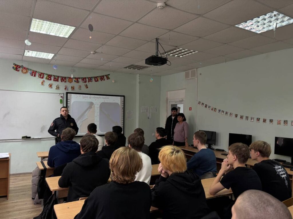 Сотрудники полиции рассказали студентам об ответственности несовершеннолетних за противоправное поведение и особенностях профилактики правонарушений, совершаемых несовершеннолетними. В ходе беседы были затронуты вопросы о запрете нахождения несовершеннолетних в общественных местах в ночное время без сопровождения родителей (законных представителей), о вовлечении молодёжи в проведение несогласованных публичных мероприятий, о профилактике хищений с использованием электронных средств платежей. Употреблению и распространению наркотических средств было уделено внимание в ходе беседы, так как наркомания остаётся одной из самых острых проблем современного мира. Наиболее уязвимы несовершеннолетние граждане, которые не успели повзрослеть, окрепнуть, не способны противостоять соблазну и не умеют категорично отвечать «нет» на противоправные предложения.