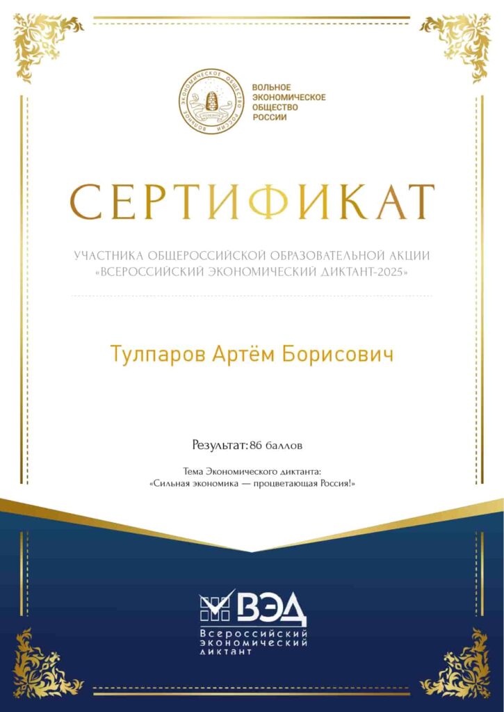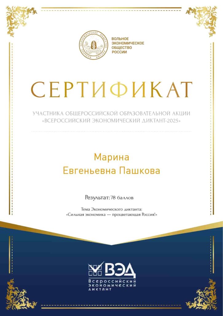 Каждый участник получил возможность оценить и повысить уровень своих знаний в области экономики, о чём свидетельствуют сертификаты.